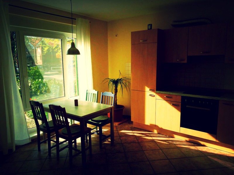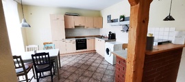 Ebenso ein Kühlschrank mit Frosterfach, Backofen mit Ceranfeld, Mikrowelle, Toaster, Flachbild-Fernseher, Stereoanlage, Waschmaschine und WLAN Internet-Zugang.