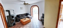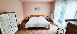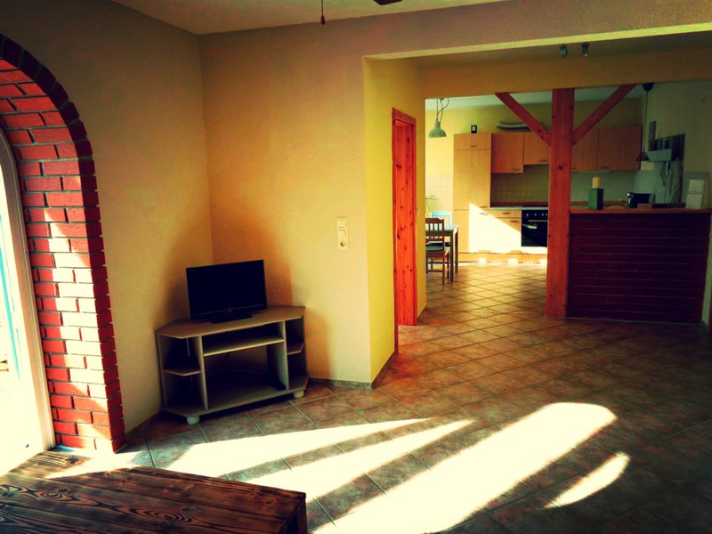 Die Ferienwohnung besteht aus einem offenen Koch- und Wohn-Bereich mit Kaminofen und Wintergarten, einem Schlafzimmer mit Ehebett, Dusche/WC, sowie einer halb überdachten Terrasse mit Grill.