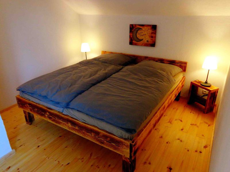Die Wohnung ist komplett in "Holz" gehalten, mit eigenen Möbel-Unikaten ausgestattet und rustikal "wieder aufgebaut",